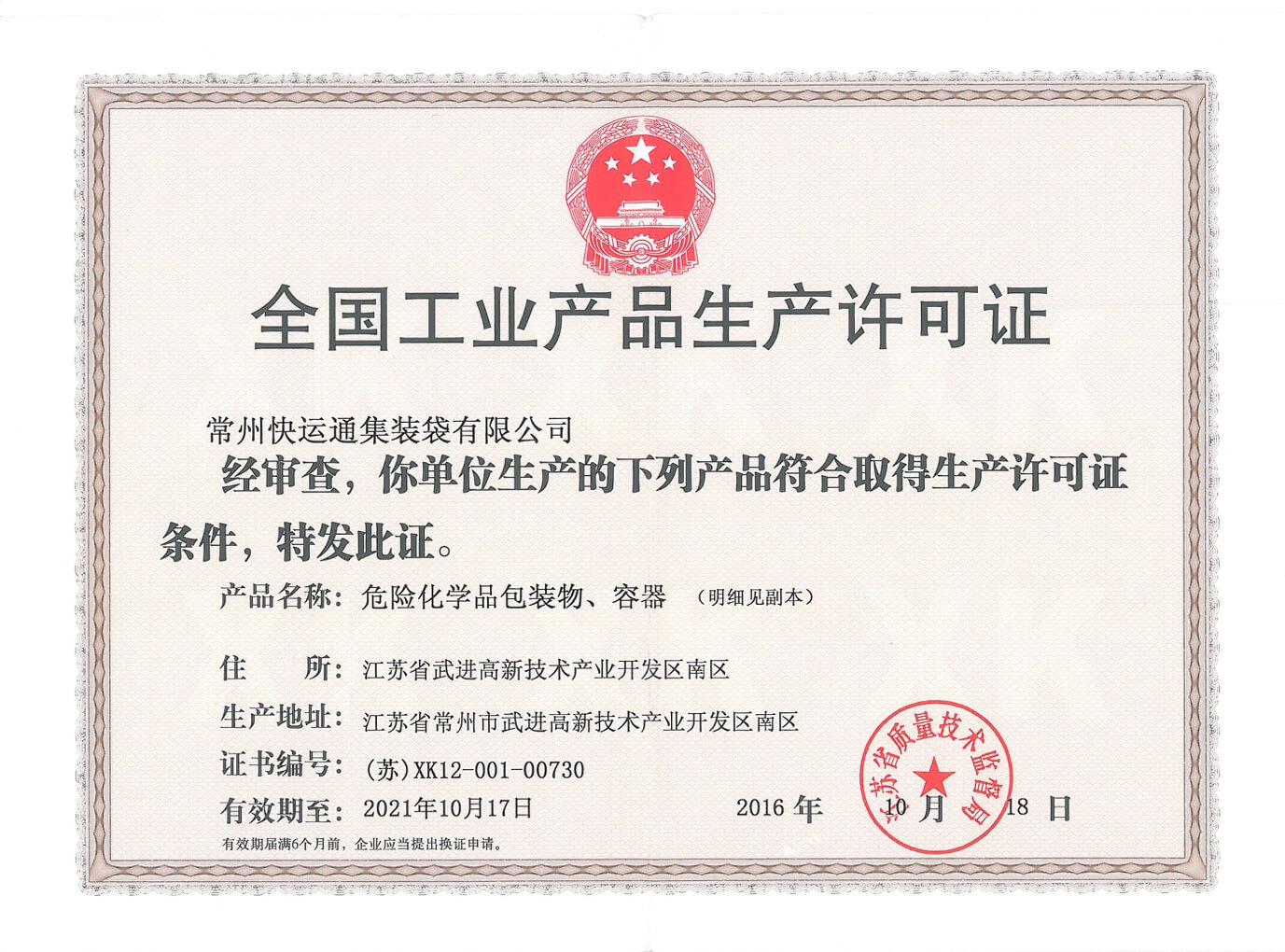 危險(xiǎn)品包裝生產(chǎn)許可證